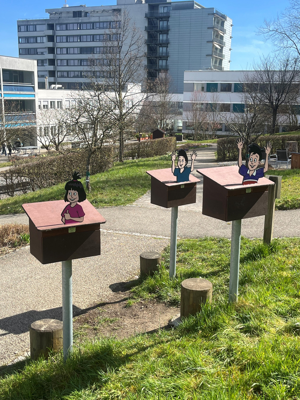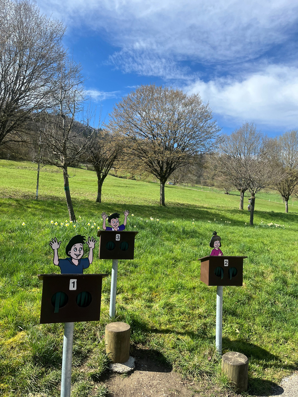 Zusätzlich durften beim Papa Moll-Weg, einem Rätselweg für Familien, die ganze Familie Moll in Form von beidseitig bedruckten Dibondschilder installiert werden.